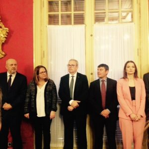 El president del Parlament, Baltasar Picornell i el diputat Miquel Vidal donaren la benvinguda a la presidenta i a la tresorera del COGTIB, Susana de Cortada i Mª Coloma Barceló.