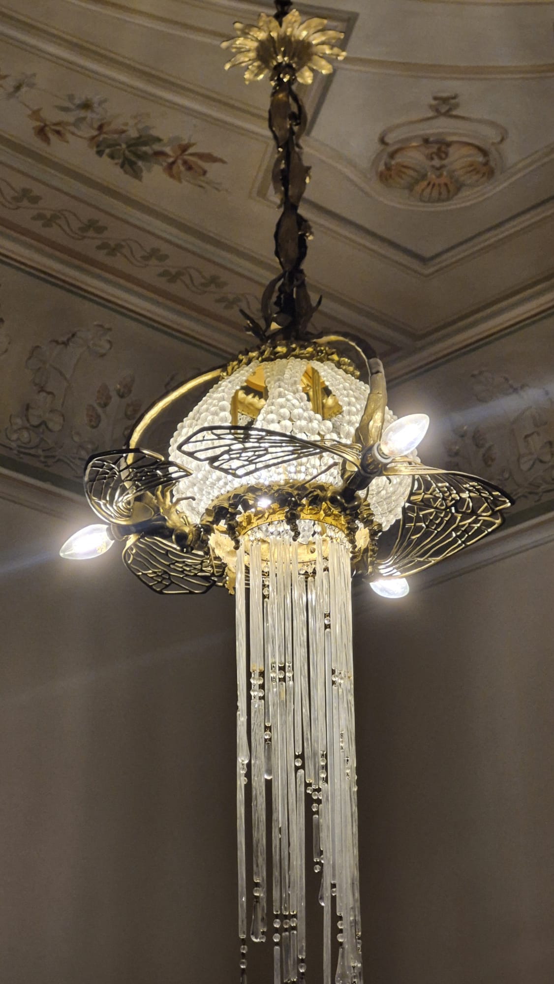 En la que fue la antigua sala de música destaca una lámpara espectacular, inspirada en Alemania y decorada con libélulas modernistas que sostienen una medusa de cristal de Bohemia en espiral, símbolo de la naturaleza y del Mediterráneo. Tres artesanos dedicaron cuatro meses a su creación, y el resultado es impresionante.