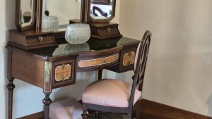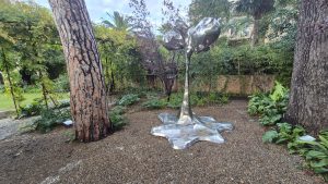 El mobiliario original de 1911, fabricado en olivo y caoba, se conserva en un estado excepcional. Su estilo, influenciado por el romanticismo alemán y el Jugendstil, refleja la durabilidad, el detalle y el gusto estético de la época. Cada pieza nos invita a imaginar la vida cotidiana de la familia. Uno de los momentos más emocionantes fue descubrir el recibidor, donde hoy se exhiben ocho obras originales de Miró y una escultura, homenaje a los 25 veranos que el artista pasó en Sóller gracias a sus raíces familiares. La colección de Can Prunera, cuidadosamente diseñada por Pere Serra, incluye también obras de Picasso, De Chirico o De Staël, organizadas siguiendo historias y conexiones entre ellas.