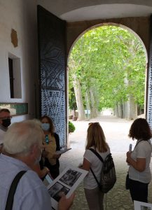 Con todo lujo de detalles y comparaciones con otros espacios históricos, y con la sensibilidad por el detalle que le caracteriza, Jaume Llabrés nos dio una clase magistral sobre la evolución histórica de los jardines y huertos de la Possessió d’Alfàbia, además de destacar y explicar también los elementos más importantes de su arquitectura y de su mobiliario, el artesonado mudéjar, el sillón gótico o “cadira del Rei Moro”, y las puertas claveteadas del portal forà, que por cierto, no vienen de la Casa Negra, sino que fueron realizadas expresamente para este portal.